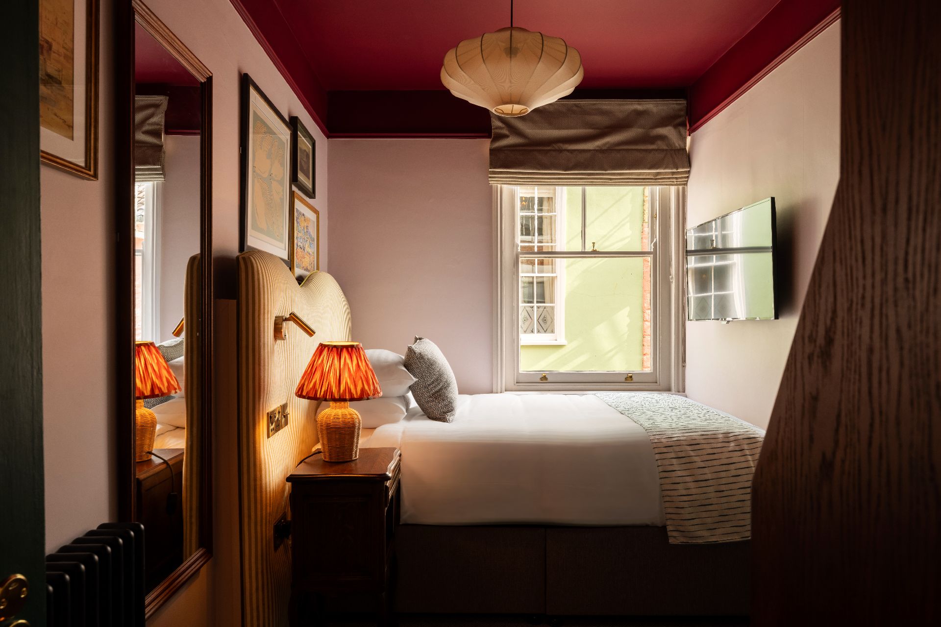 Small but perfectly formed our single room features our glamorous signature wallpaper, a deluxe bed, Smart TV, white black-out blinds, fine Egyptian cotton linen, robes, hospitality tray, and Bramley toiletries in a luxury en suite bathroom.